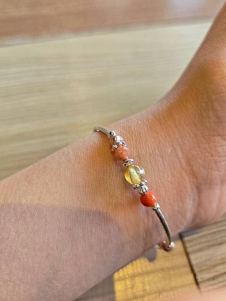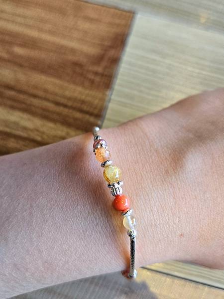 照片中是didyda Jewelry的沙丁珊瑚鈦晶太陽石手鍊,最近與他開心相處中,很美很可愛,而且超級有質感!